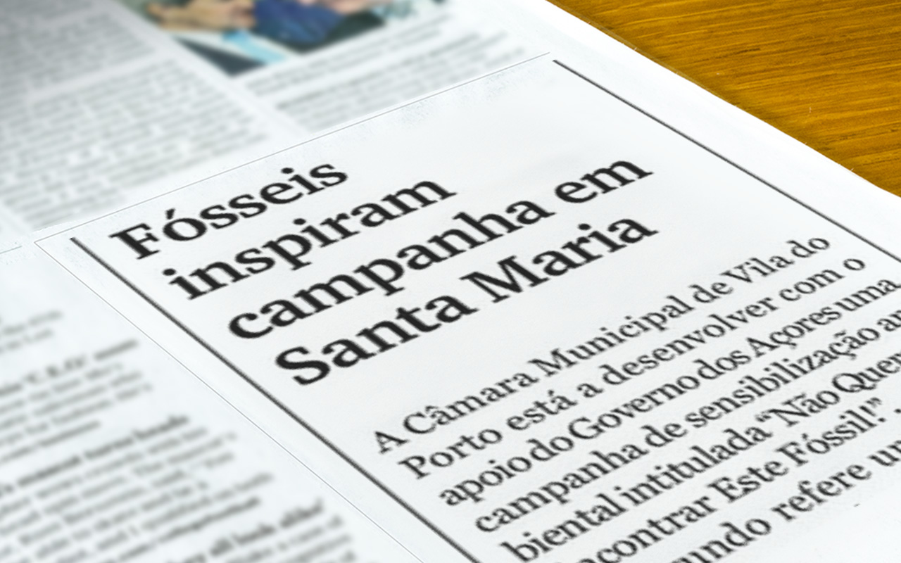 «A Câmara municipal de Vila do Porto está a desenvolver com o apoio do Governo dos Açores uma campanha [produzida e idealizada pela empresa Zona de Ideias] de sensibilização ambiental intitulada ‘Não Queremos Encontrar Este Fóssil!'. […] esta campanha visa promover e incentivar a adoção de boas práticas ambientais por parte da população mariense, levando à diminuição da produção de resíduos e uma maior valorização dos resíduos produzidos».