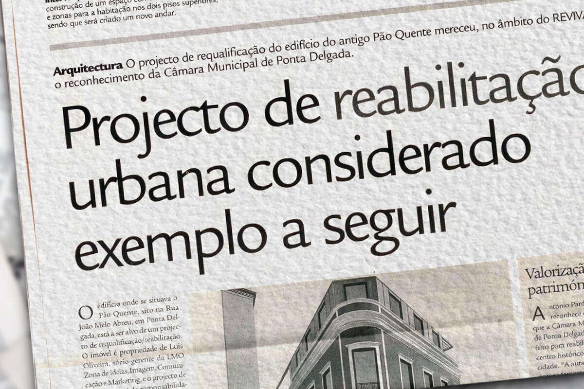 «O edifício […] na rua João Melo Abreu, em Ponta Delgada está a ser alvo de um projeto de requalificação/reabilitação. O imóvel é propriedade de Luís Oliveira, sócio-gerente da Zona de Ideias e o projeto de arquitetura é da responsabilidade da AP Arquitetos. A intervenção, que se enquadra no programa REVIVA, uma iniciativa da Câmara Municipal de Ponta Delgada, foi reconhecida, pela autarquia como exemplo a seguir no que à conservação do património imóvel diz respeito. [...] A Zona de Ideias comprou o edifício com o intuito de albergar algumas das áreas da empresa. 'Temos vindo a crescer e achei aquele espaço interessante'».