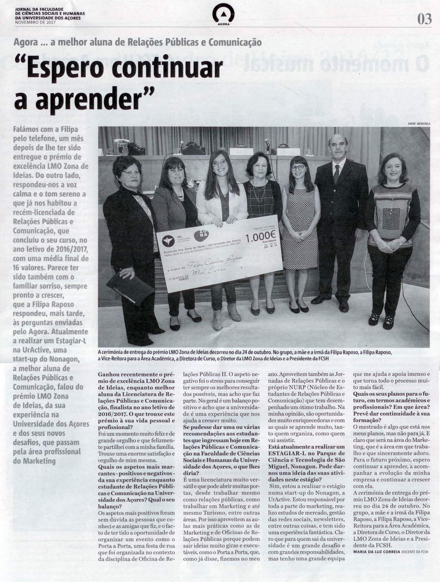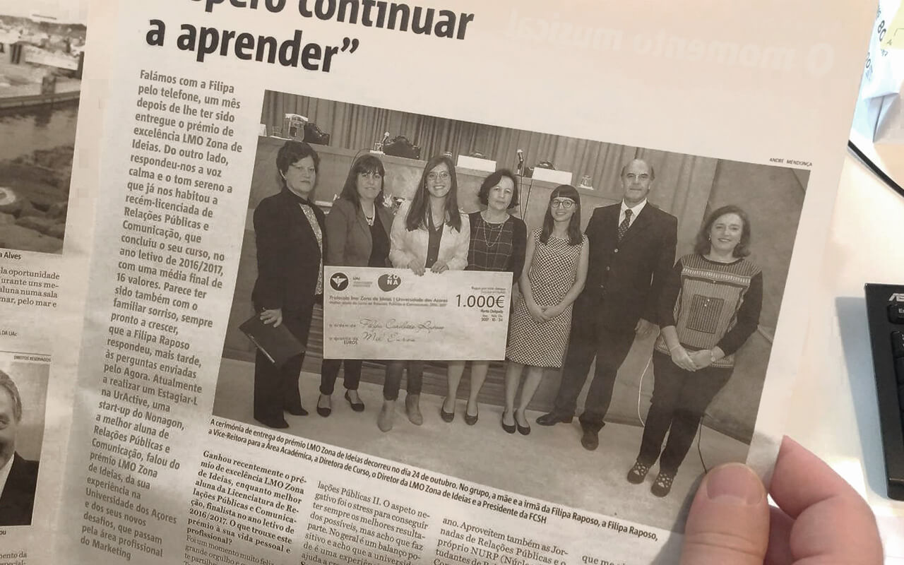 A melhor aluna de Relações Públicas e Comunicação da Universidade dos Açores, Filipa Raposo, fala do prémio LMO Zona de Ideias ao Açoriano Oriental.